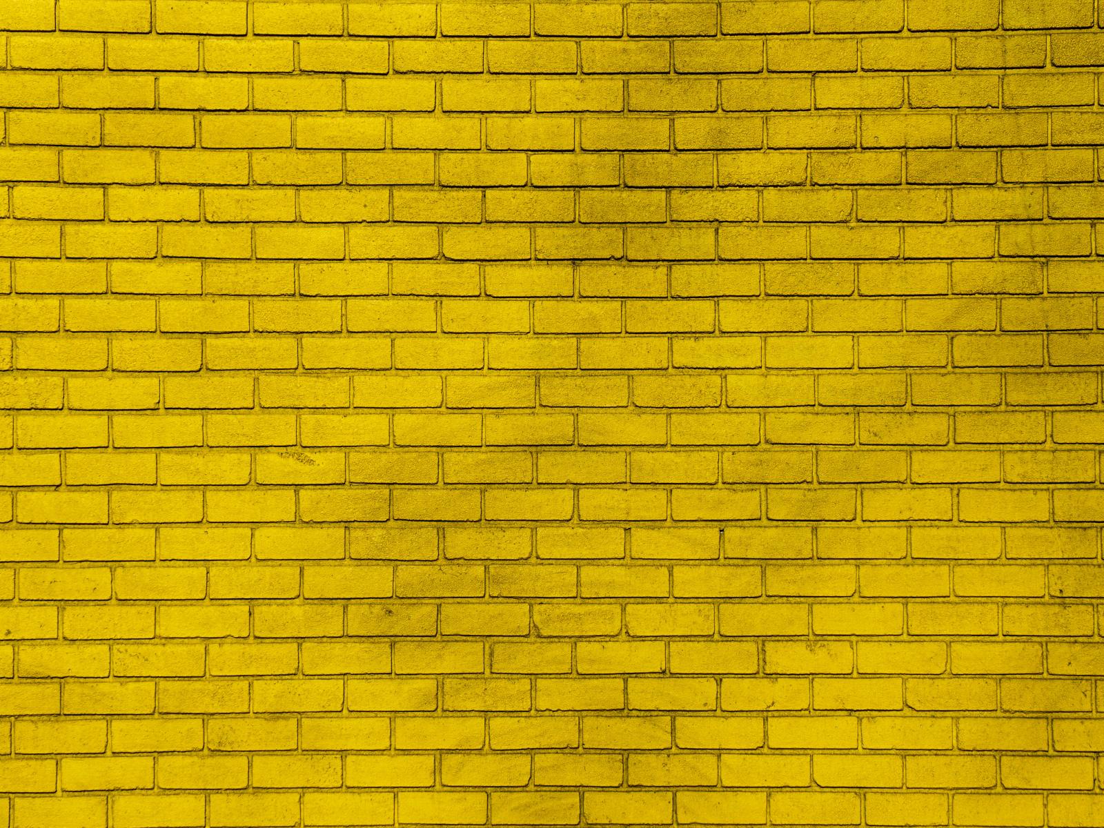 Wallpaper Beautiful Asian girl in a yellow dress is standing by a brick column.
