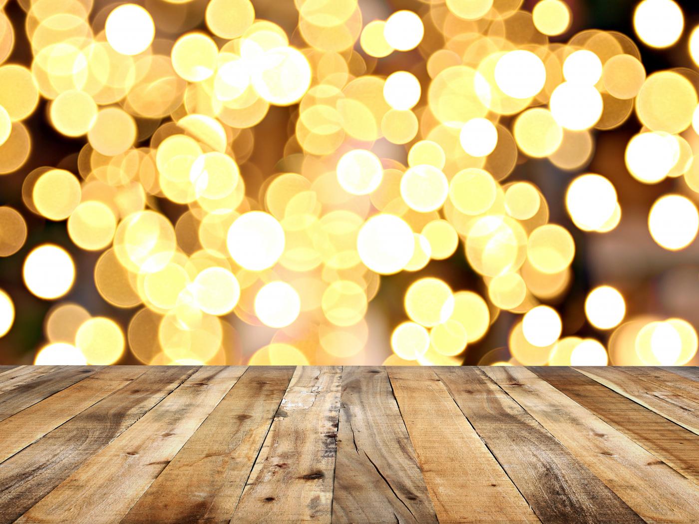 Wallpaper Wood planks and golden bokeh background