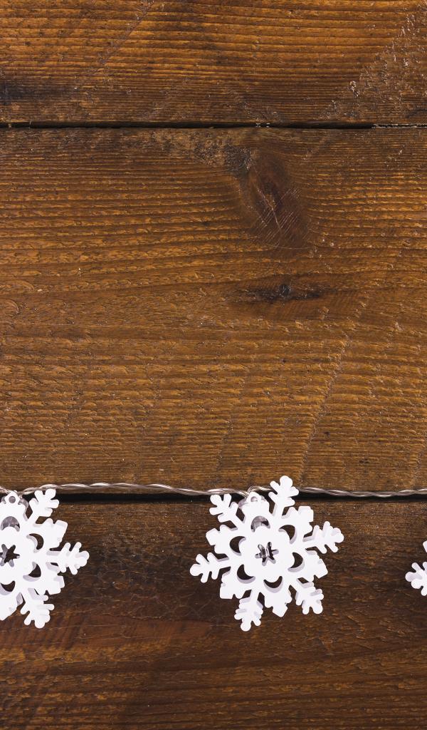 Wallpaper White snowflakes on a wooden background