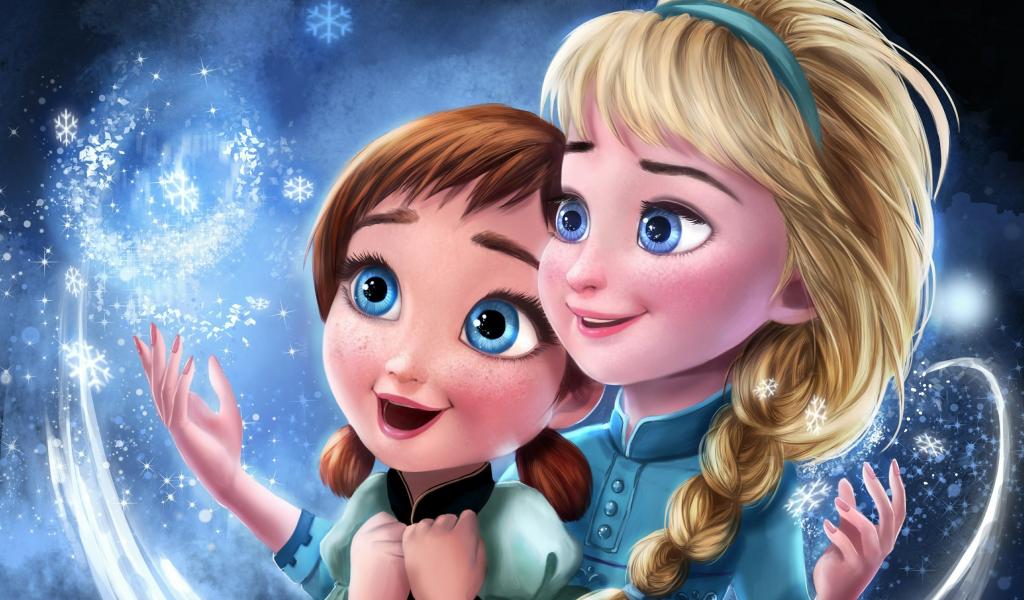 Wallpaper Little Anna and Elsa catch snowflakes