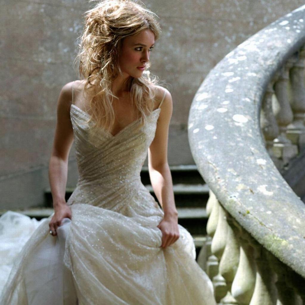 Wallpaper A girl in a white dress walks down the stairs, Keira Knightley