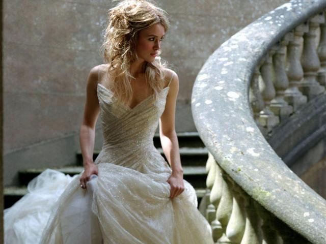 Wallpaper A girl in a white dress walks down the stairs, Keira Knightley