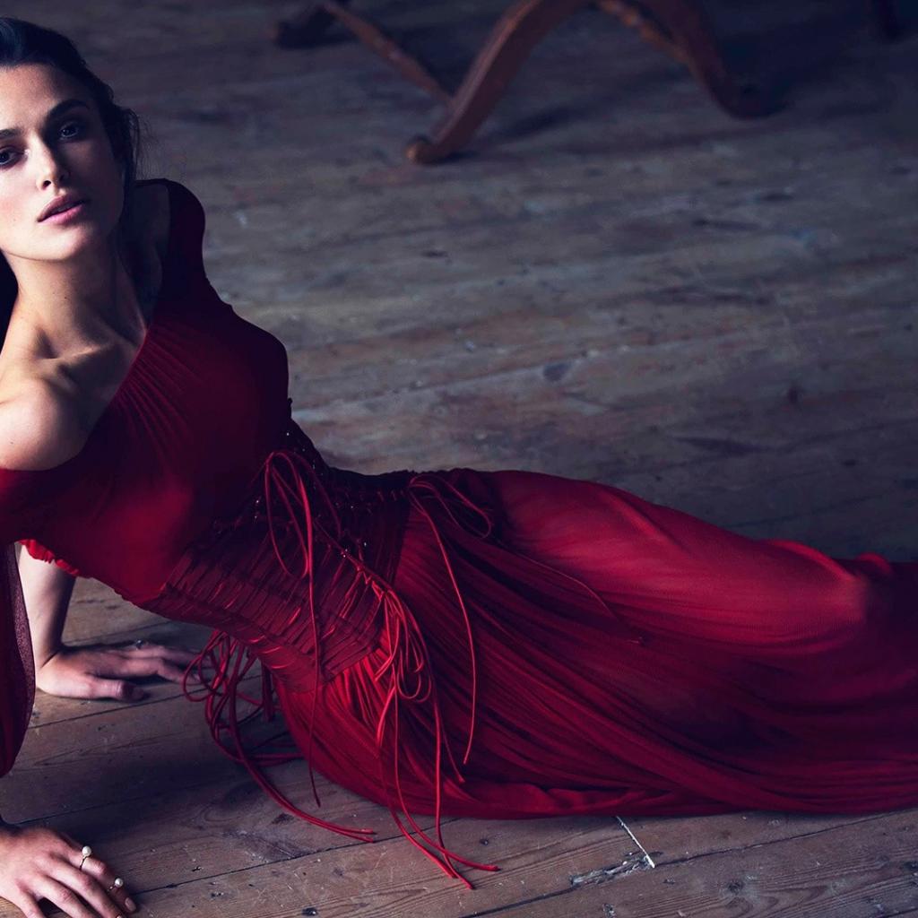 Wallpaper Keira Knightley in a red dress on the floor