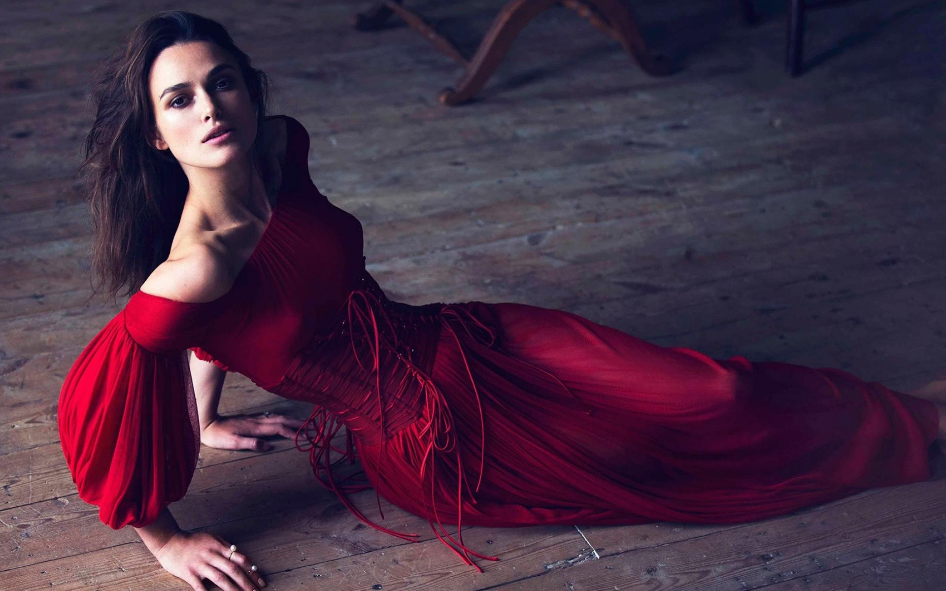 Wallpaper Keira Knightley in a red dress on the floor