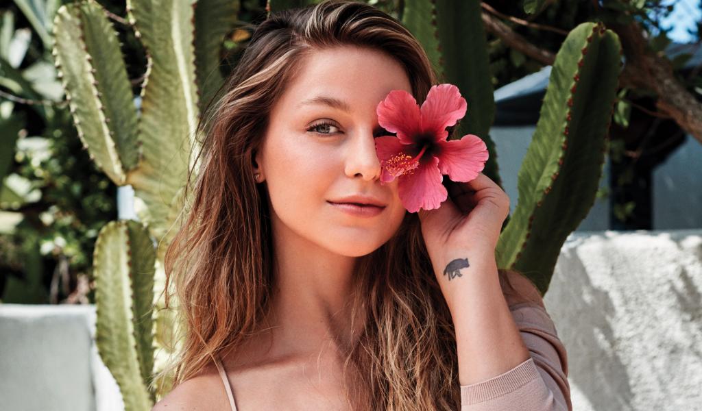 Wallpaper Beautiful girl actress Melissa Benoist with a flower