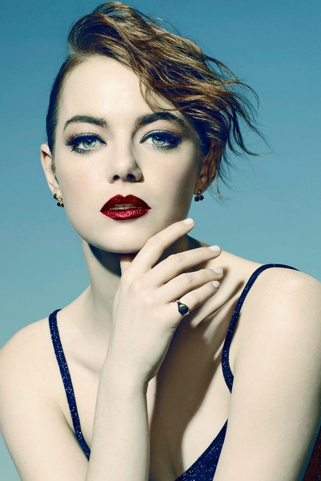Wallpaper Actress Emma Stone with bright red eyes