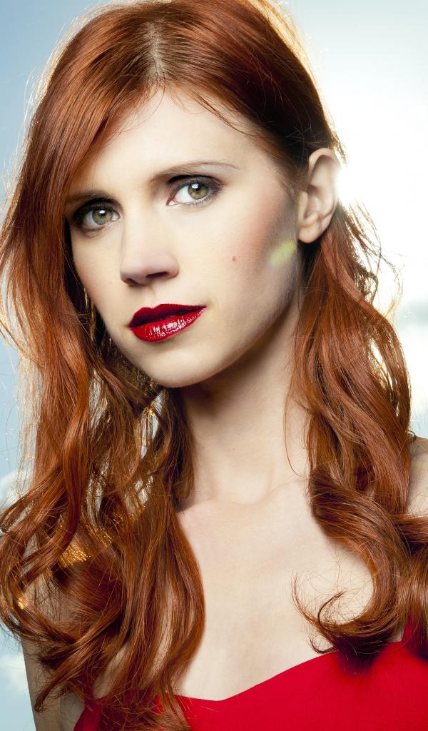 Wallpaper Red-haired actress Julie McNiven with red lips