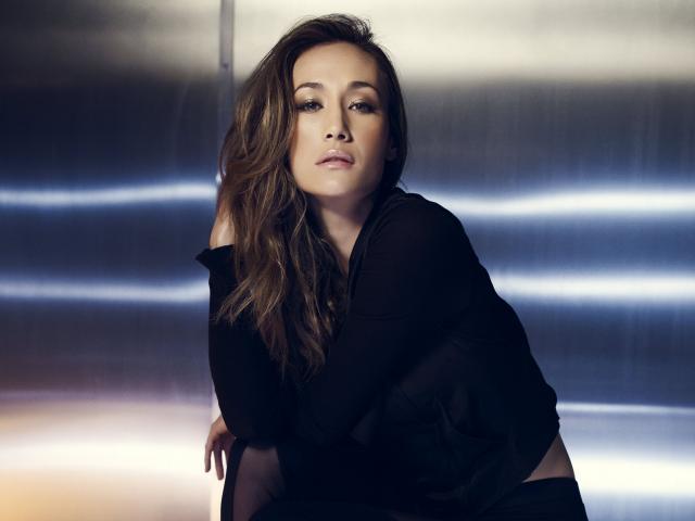 Wallpaper Beautiful brunette actress Maggie Q on a gray background