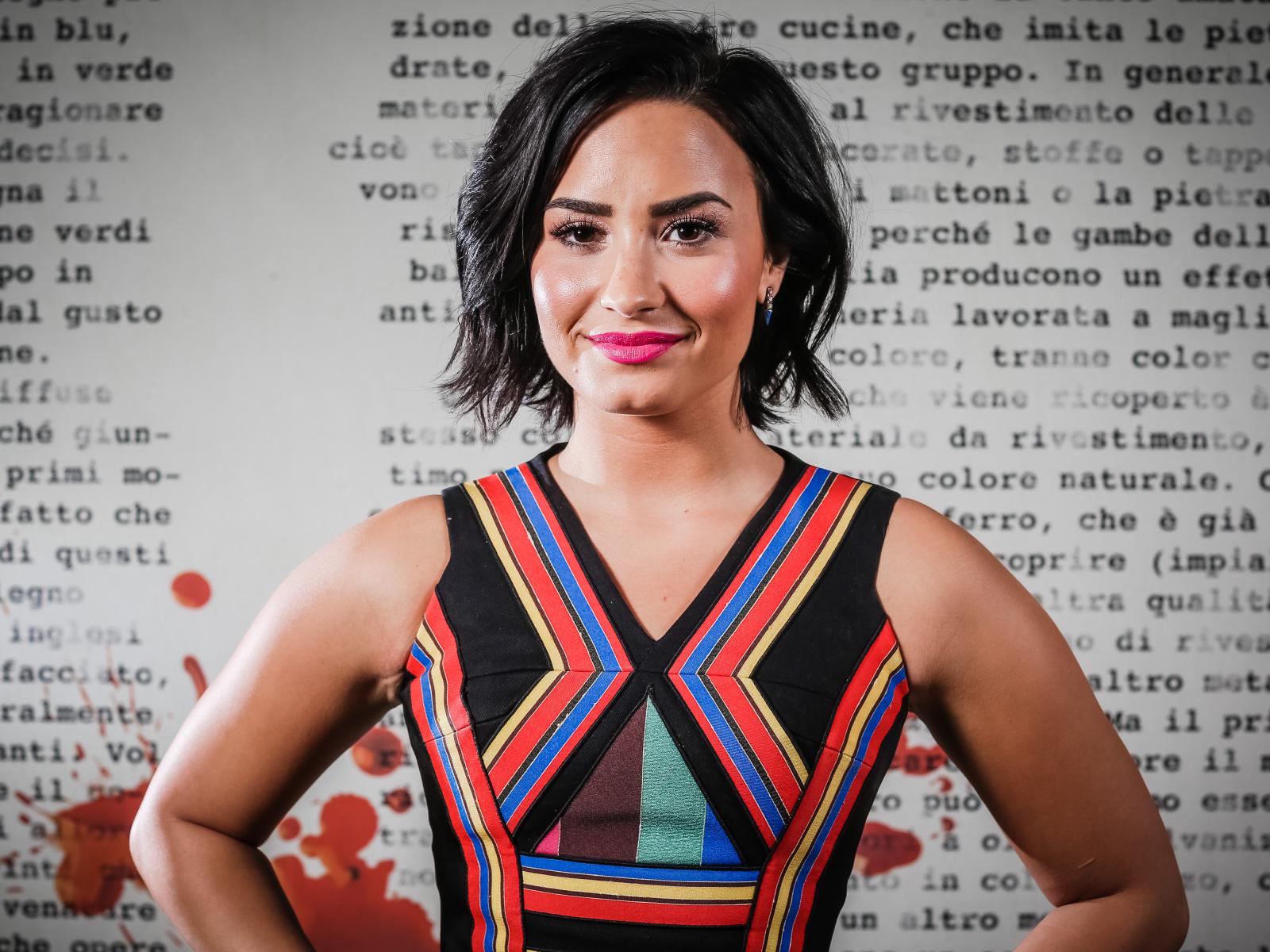 Wallpaper The brunette girl Demi Lovato in a bright dress
