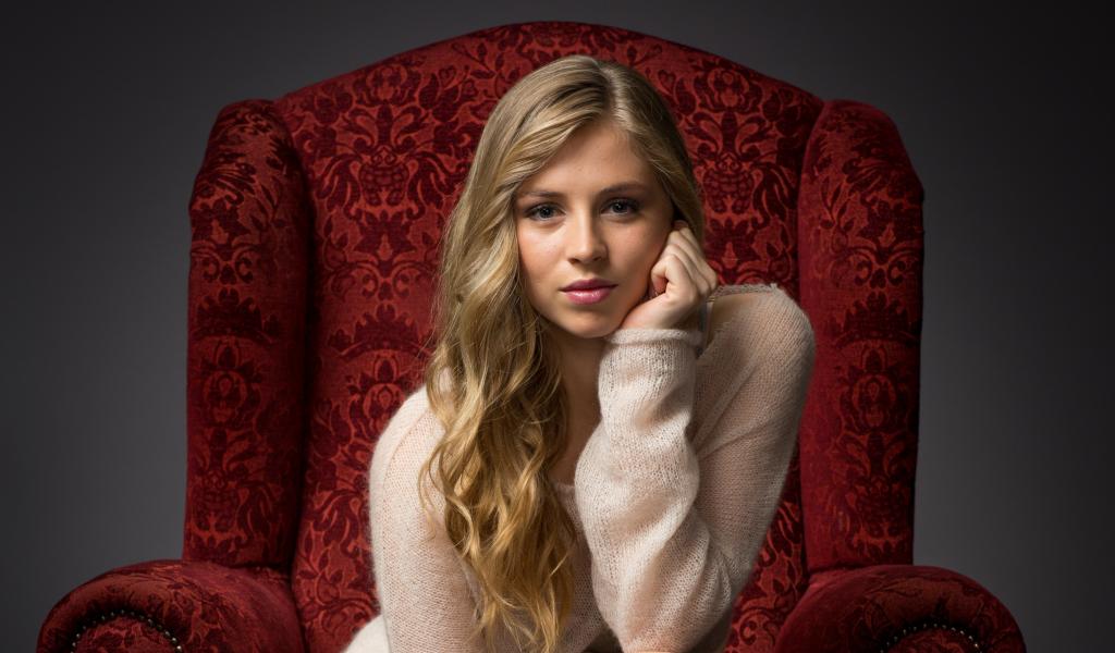Wallpaper Beautiful girl blonde actress Hermione Corfield in the chair