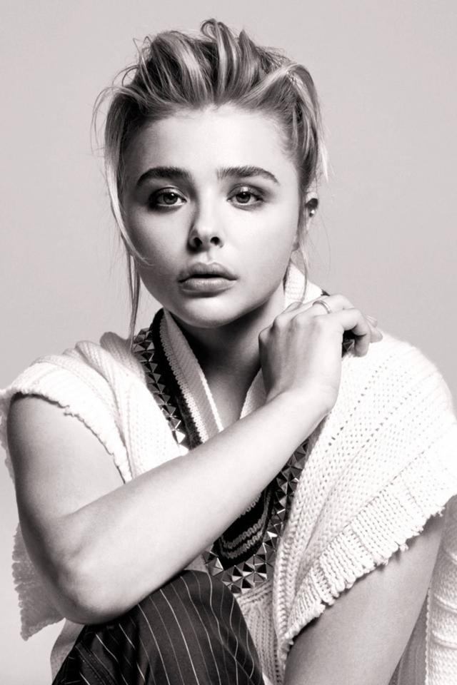 Wallpaper Young popular actress Chloe Grace Moret in black and white photo