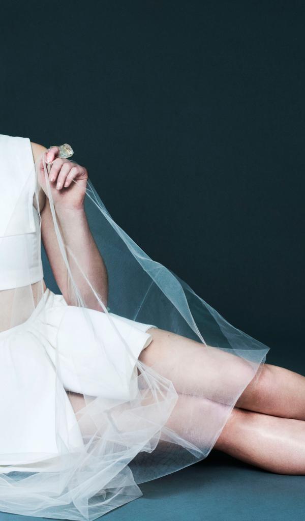 Wallpaper Young blue-eyed actress Sophie Turner in white attire