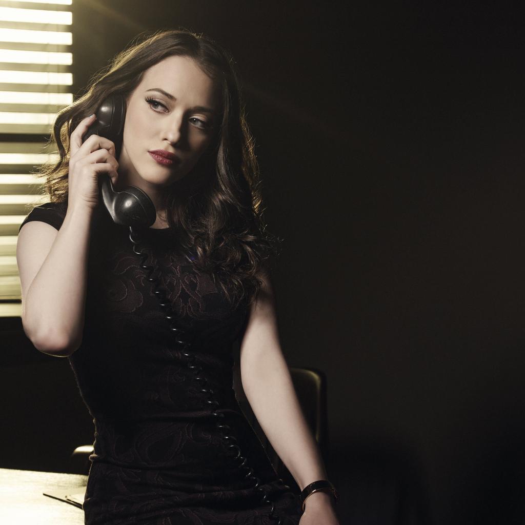 Wallpaper Actress Kat Dennings in a black dress with a phone in her hands