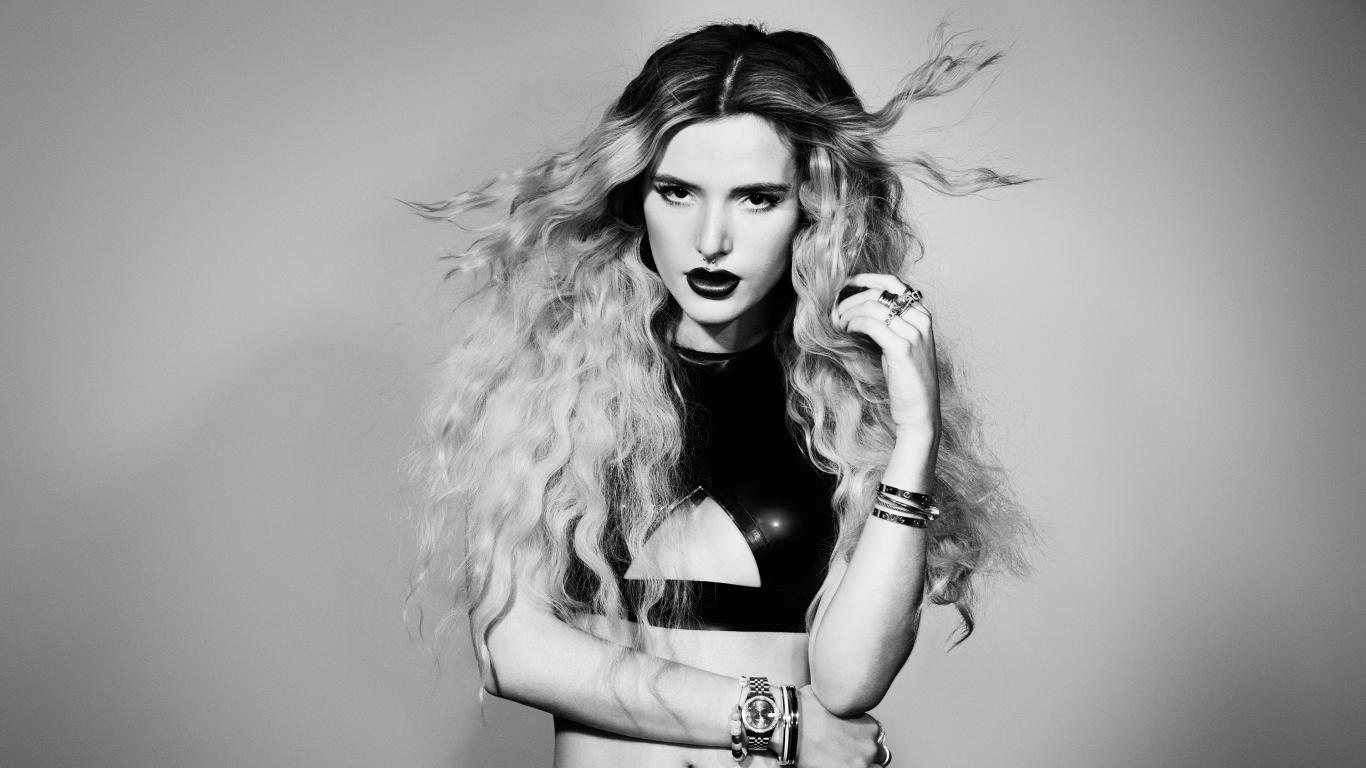 Wallpaper Beautiful American actress Bella Thorne black and white photo