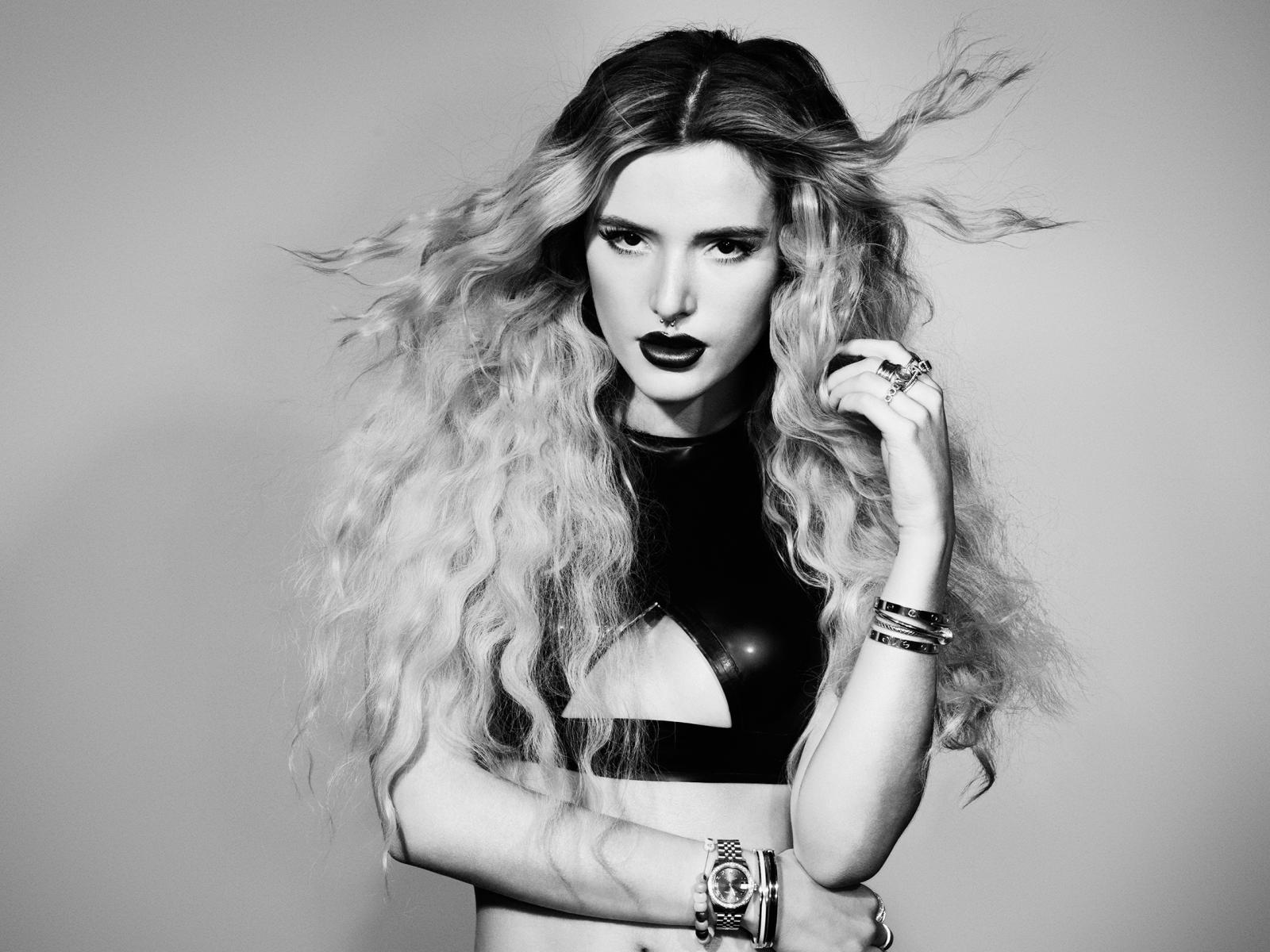 Wallpaper Beautiful American actress Bella Thorne black and white photo