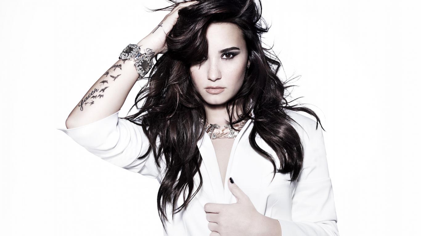 Wallpaper Young American actress Demi Lovato with a tattoo on her arm