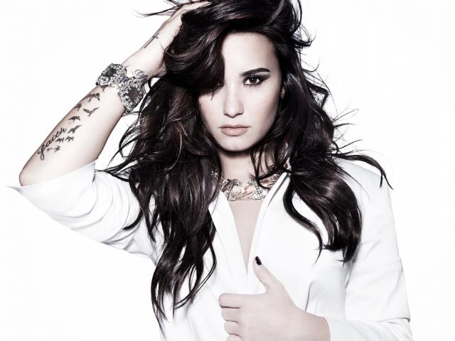Wallpaper Young American actress Demi Lovato with a tattoo on her arm