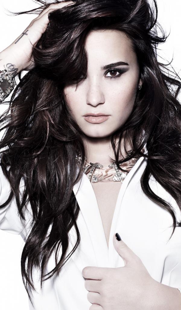 Wallpaper Young American actress Demi Lovato with a tattoo on her arm