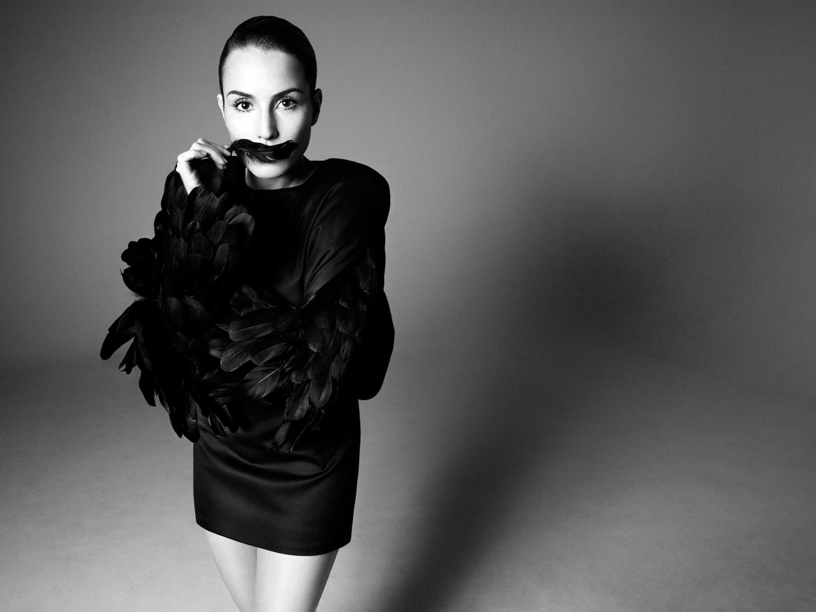 Wallpaper Actress Numi Rapas in black dress in black and white photo