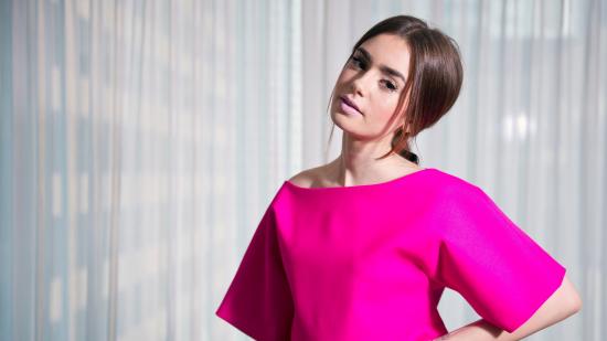 Wallpaper Actress Lily Collins in a beautiful pink dress