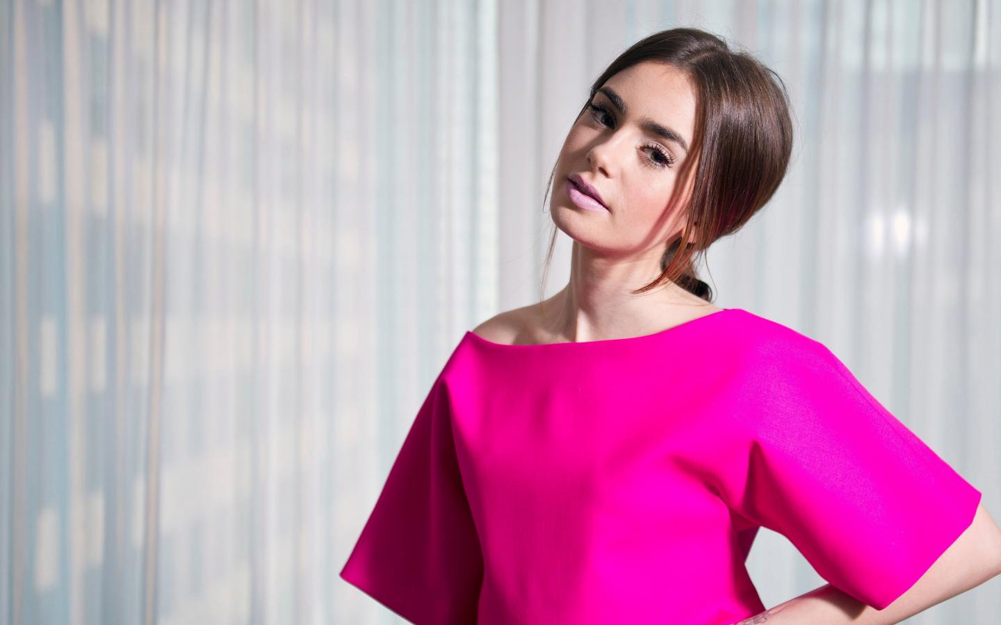 Wallpaper Actress Lily Collins in a beautiful pink dress