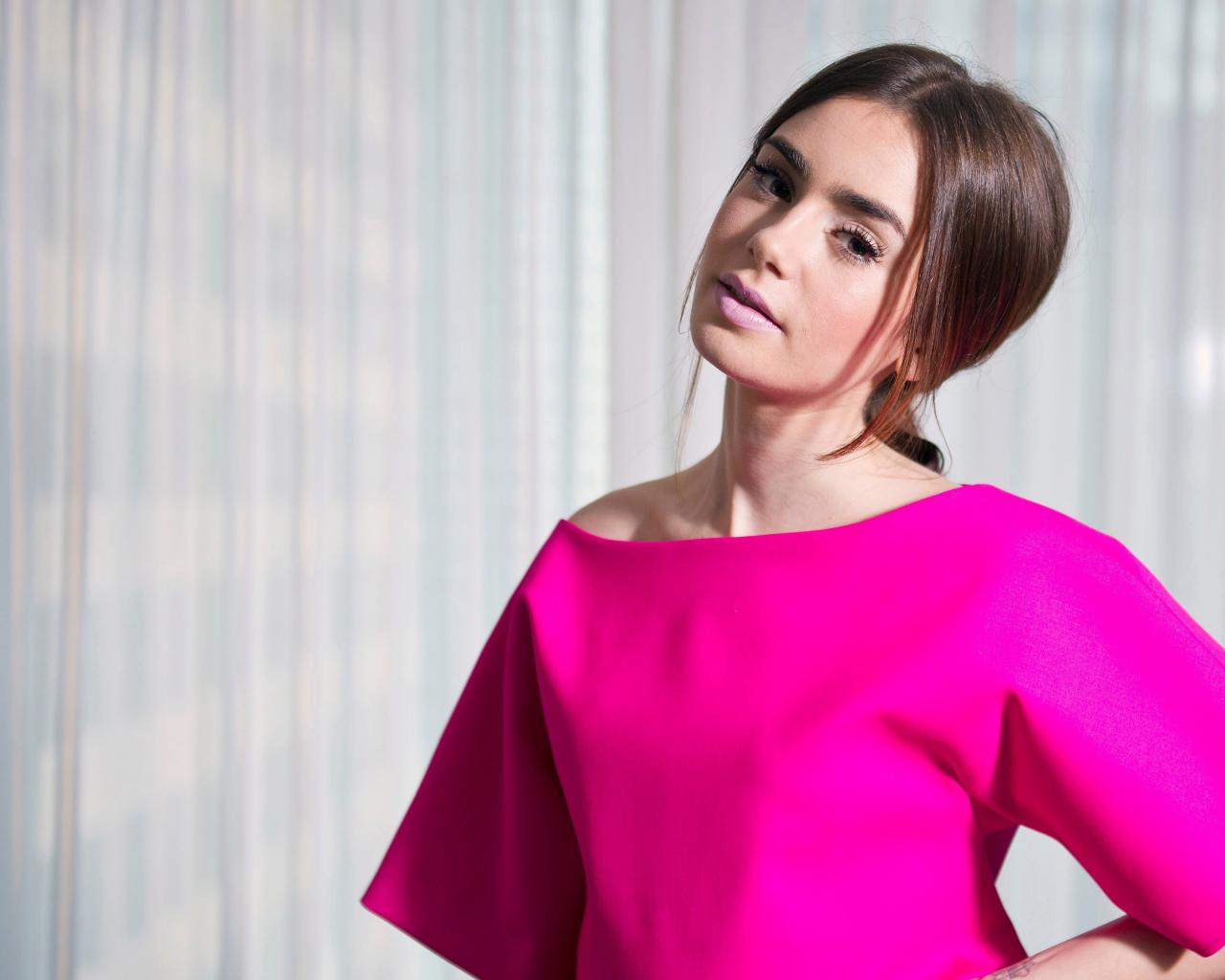 Wallpaper Actress Lily Collins in a beautiful pink dress