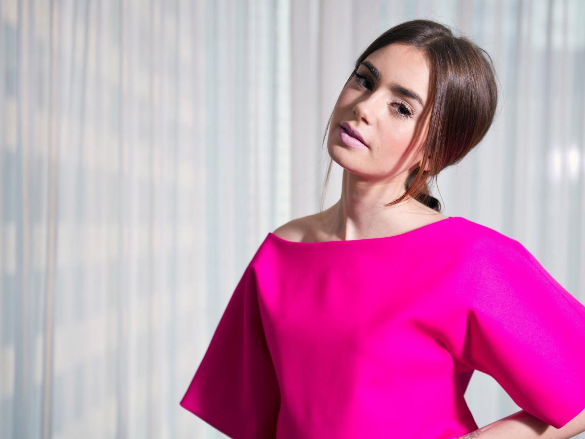 Wallpaper Actress Lily Collins in a beautiful pink dress