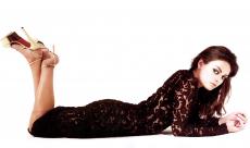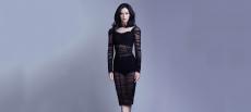 Wallpaper Actress Kristen Ritter in a beautiful dress on a white background