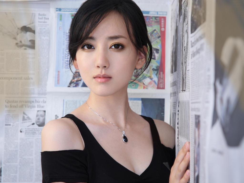 Wallpaper Actress Jing Tian with a beautiful pendant around her neck