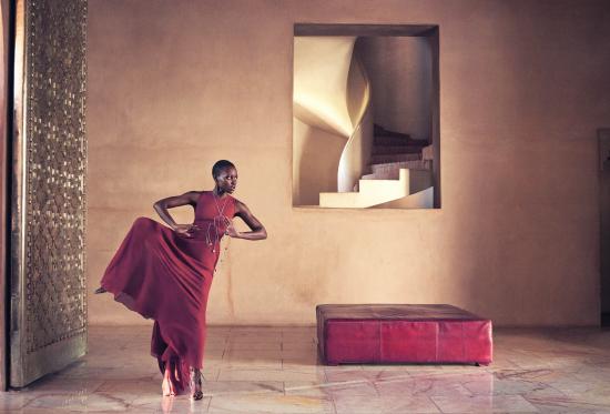 Wallpaper Young actress Lupita Nyongo dances in a red dress