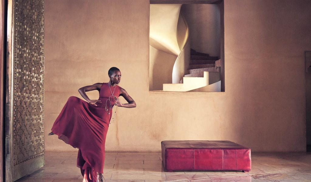 Wallpaper Young actress Lupita Nyongo dances in a red dress