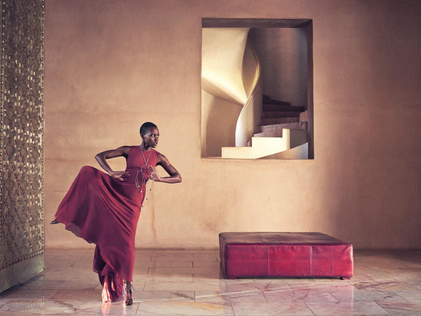 Wallpaper Young actress Lupita Nyongo dances in a red dress