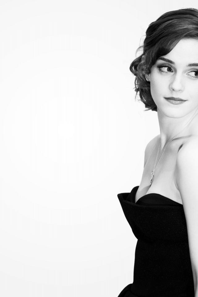 Wallpaper Young actress Emma Watson in black and white photo