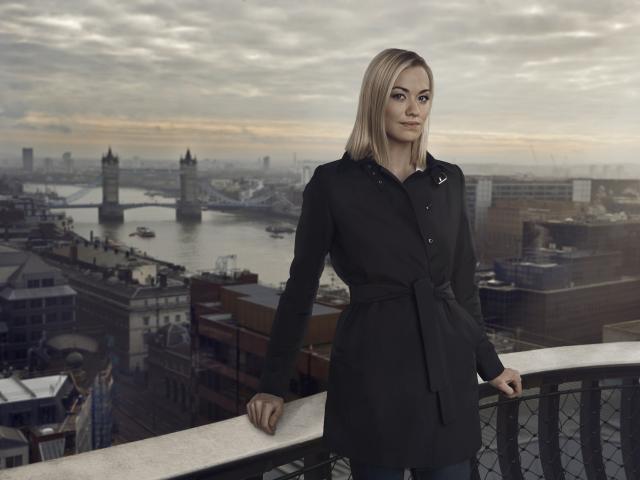 Wallpaper Australian actress Yvonne Strahovski in a black coat