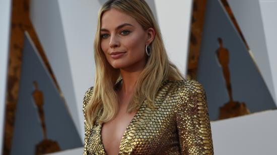 Wallpaper Blonde actress Margot Robbie in a gold dress