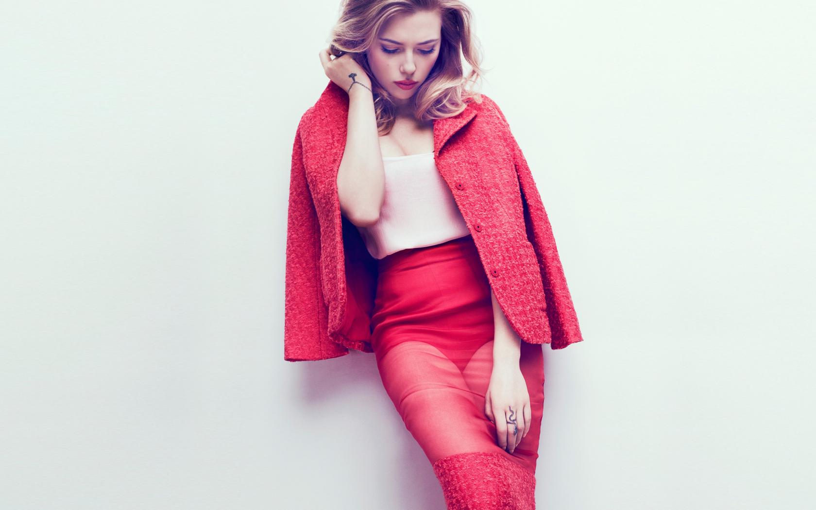 Wallpaper Effective blonde Scarlett Johansson in a red suit