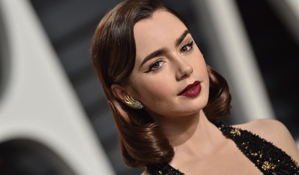 Wallpaper Spectacular brunette Lily Collins with beautiful makeup