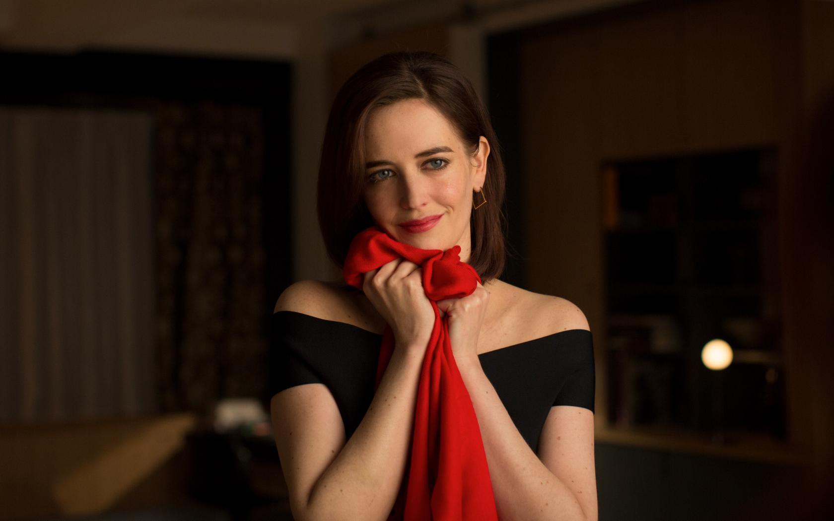 Wallpaper Actress Eva Green with a red scarf in her hands