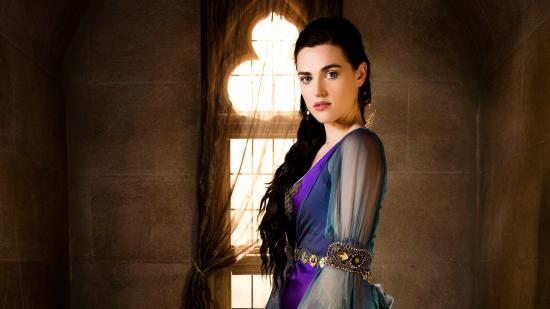 Wallpaper Young brunette actress Cathy McGrath in a beautiful dress