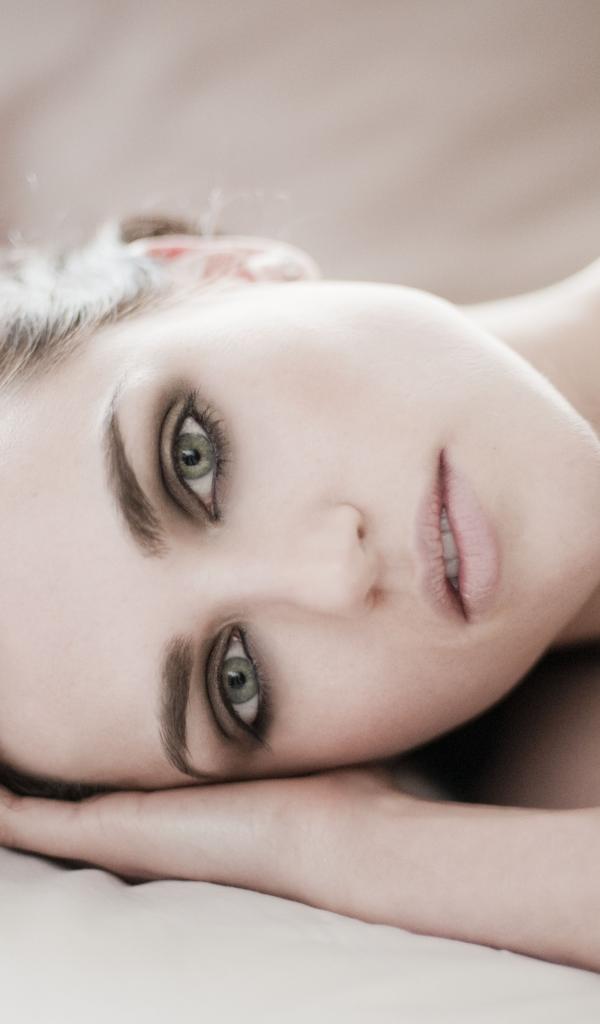 Wallpaper Young beautiful girl, actress Katie McGrath on a gray background