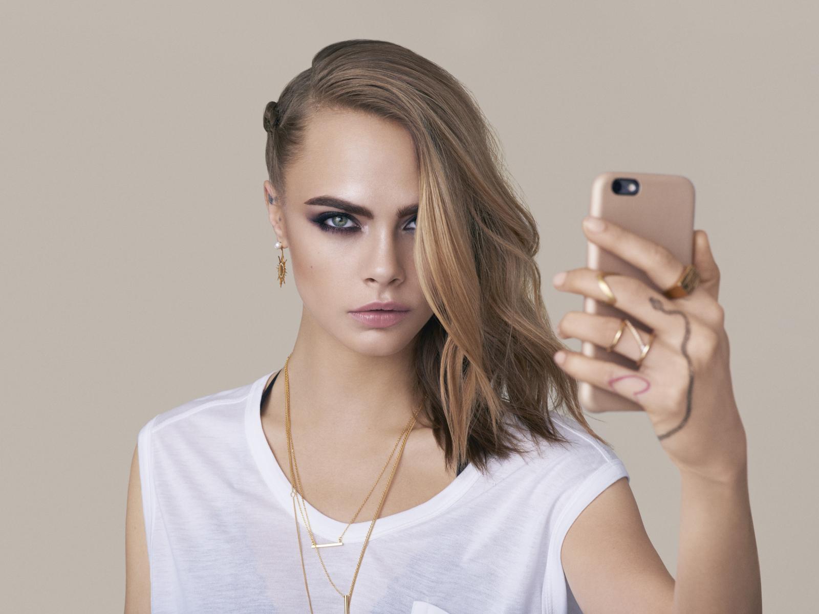 Wallpaper Young actress Kara Delevin with a phone in her hands