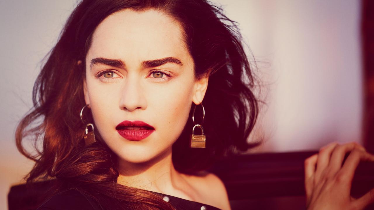 Wallpaper Popular actress Emilia Clark with earrings in the form of locks