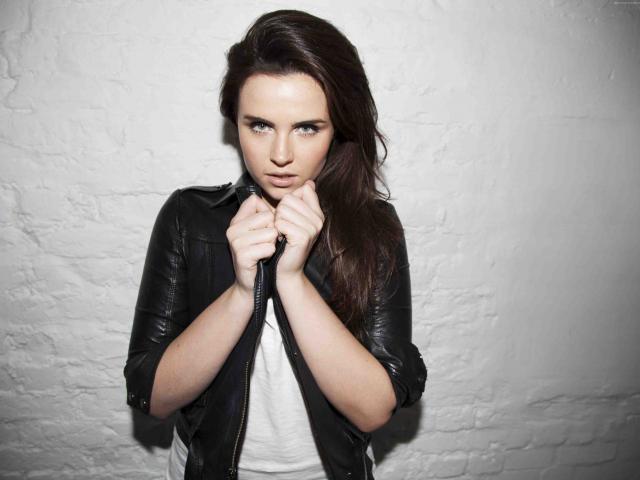 Wallpaper British actress Emer Kenny in a black leather jacket