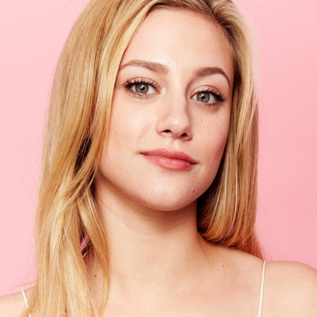 Wallpaper Young blonde, actress Lily Reinhart photo on a pink background