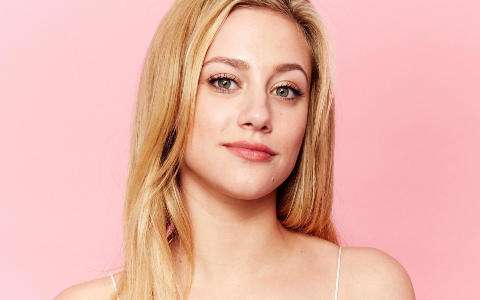 Wallpaper Young blonde, actress Lily Reinhart photo on a pink background