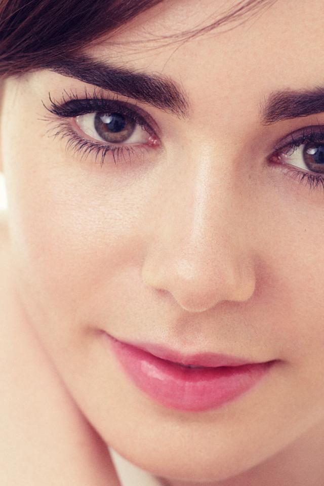 Wallpaper Expressive look of brown-eyed actress Lily Collins