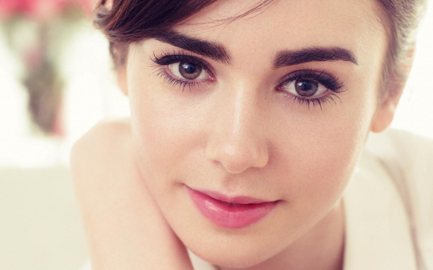 Wallpaper Expressive look of brown-eyed actress Lily Collins