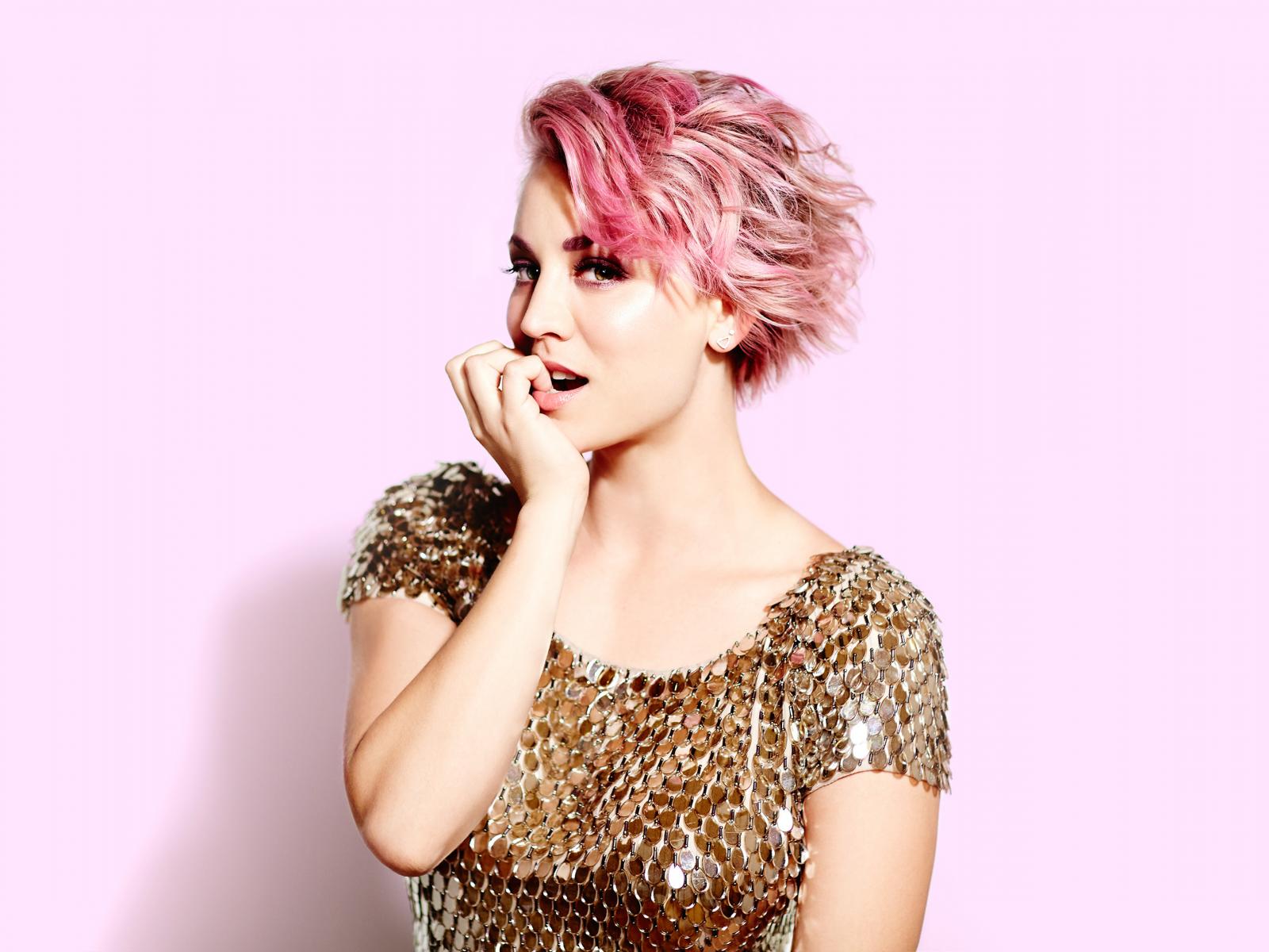 Wallpaper Young actress Keilie Cuoco with pink hair