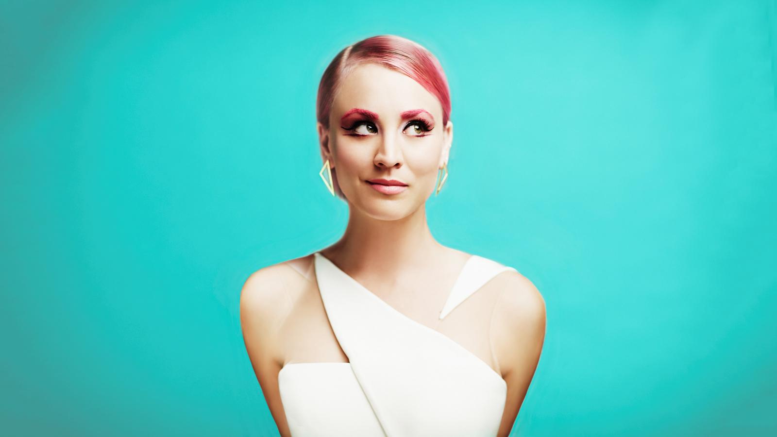 Wallpaper Actress Keely Kuoko with a bright make-up on a blue background