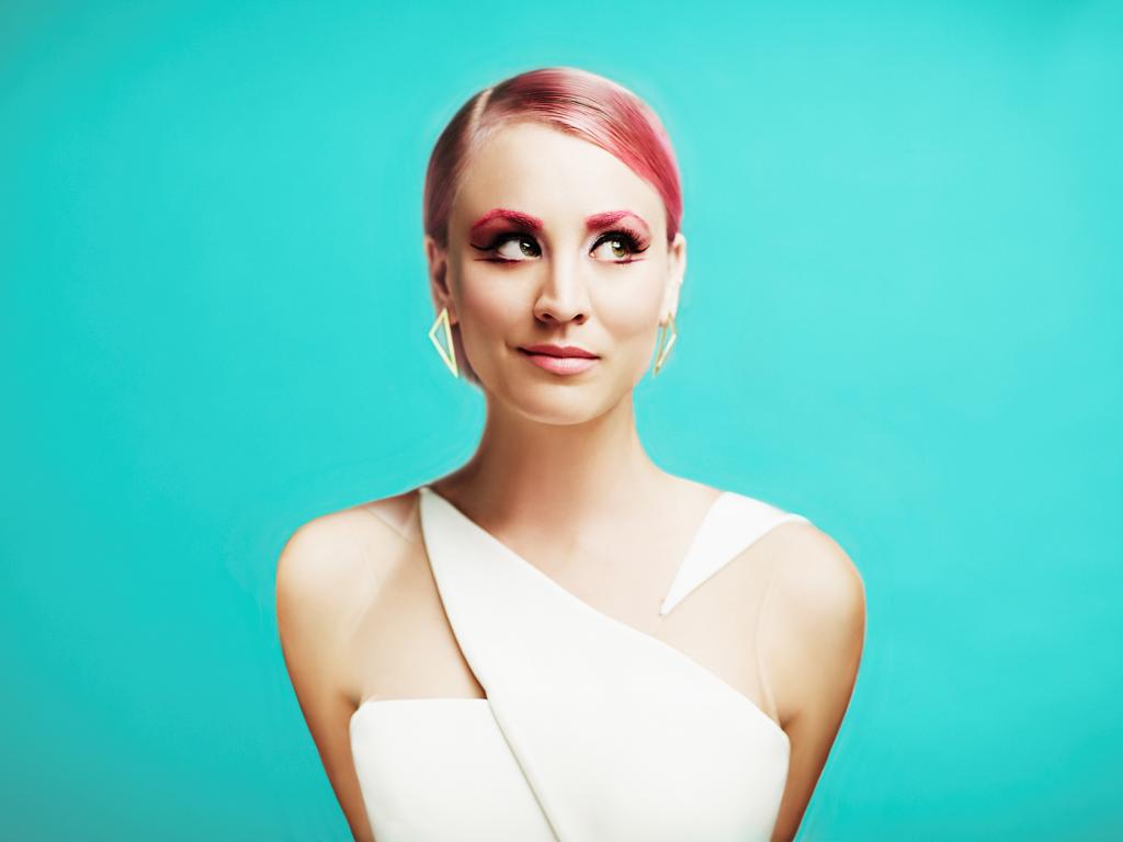 Wallpaper Actress Keely Kuoko with a bright make-up on a blue background